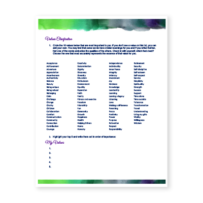 Download Values Clarification Worksheet